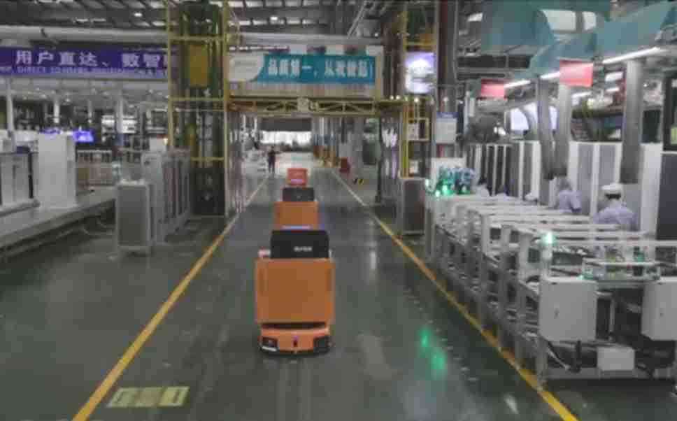 为车载冰箱物流配送打造的智能解决方案,,,,包含产中物流通过潜伏举升AMR搬运至线边,,,产后成品物流智能仓储,,,流程包含产中物流智能齐套入库,,线边安灯叫料AMR智能配送至线边,,成品入库、、、、出库,,,,通过无人堆高车机器人,,,,智能仓储管理替代人工作业管理,,,,实现更高存储、、、、更高效率、、更具柔性化的解决方案。。。